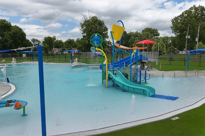 The Algonquin Pool in Louisville, Kentucky, is undergoing a renovation to modernize the facility and enhance its amenities. Funded by American Rescue Plan funds, the project will include the construction of a new pool house and replacement of the existing pool with a new structure featuring a family slide, lily pad bridge, vortex, climbing wall, and zero-depth entry ramp. The renovated pool is expected to open by Memorial Day, 2025.